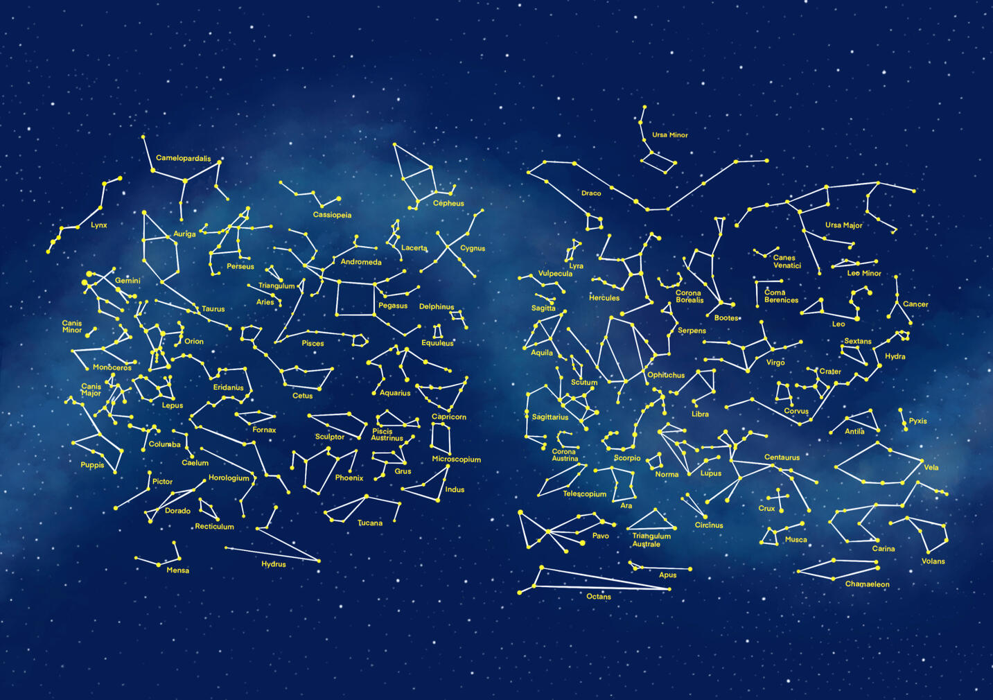 If you look up at the night sky and connect the dots between the stars, you’ll see they form shapes known as constellations. Our night sky is filled with these starry illustrations, like pictures in a giant storybook. These constellations gently shift, changing their positions with the seasons. From animals and people to various objects, each constellation has its own story to tell. How many can you find in the celestial canvas above?